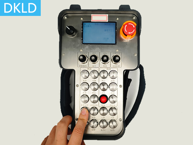 • 3个双轴摇杆+8个按键+1个两档旋转开关+1个5档旋转开关7寸触摸屏平板型工业无线??仄?/div>